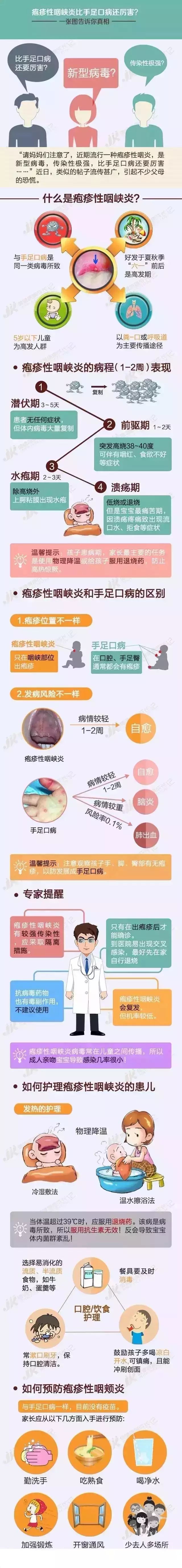 疱疹性咽峡炎的病情较轻,却也会有合并细菌感染的可能,也可能发生脑膜炎、心肌炎等并发症,所以,如果持续高热、溃疡不愈等要考虑就医,一旦出现呕吐、头痛、精神萎靡等症状,要尽快就医。
