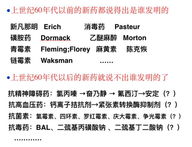 我们在大学课本上都能看到这些人的名字,很明确是这些药物的发明者。