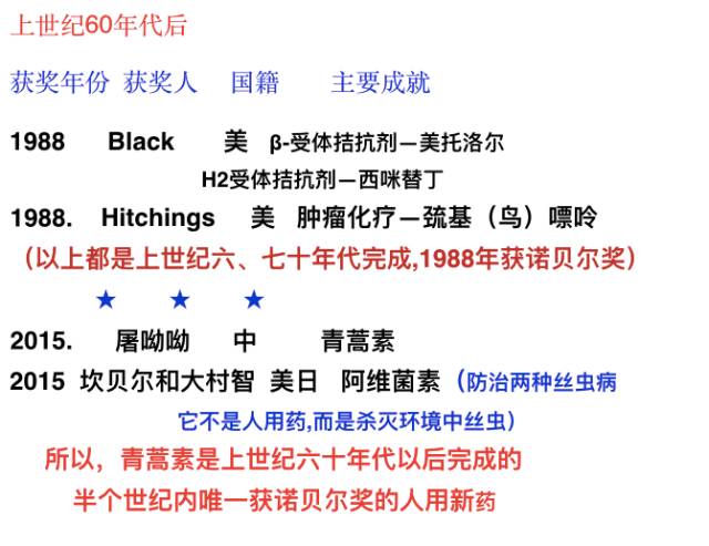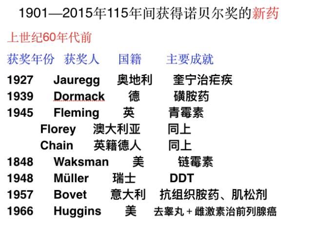 图2 上世纪60年代之前获得诺奖的新药 来源:秦伯益演讲PPT