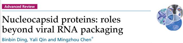 近日,武汉大学生命科学院病毒学系陈明周教授受邀在《WIREs RNA》(IF=6.019, 2015)发表了题为“Nucleocapsid proteins: roles beyond viral RNA packaging” 的综述论文,系统的总结了病毒核衣壳蛋白(Nucleocapsid Protein, NP)除了在包裹病毒的RNA之外的许多重要功能及其作用机制。博士生丁彬彬为第一作者,陈明周教授做为该综述的通讯作者。