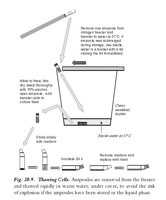 cells/mL and 5–10%DMSO (or 10–15%glycerol). It is notadvisable to place ampoules on ice in an attempt to minimize deterioration ofthe cells(不要自作聪明哦). A delay of up to 30 min at room temperatureis not harmful when using DMSO and is beneficial when using glycerol.