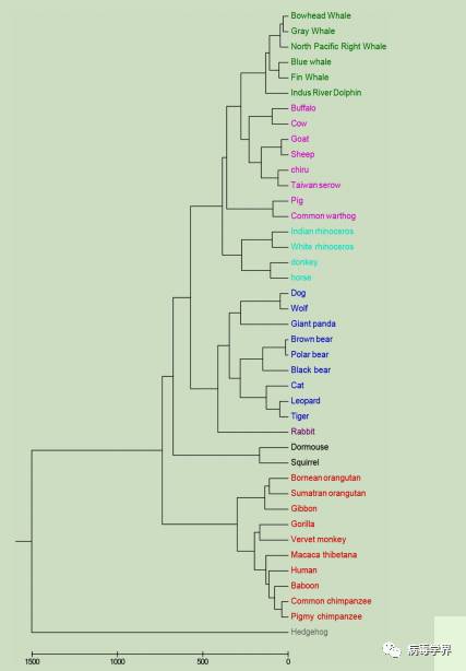 近日,国际著名期刊Nature子刊Scientific Reports刊登了清华大学数学系的Yongkun Li 等人的论文。该研究构建了一个新型的18维矢量方法来比较生物序列,新颖之处在于将序列某些重要的物理化学性质合并其中。该工作揭示了新方法比传统方法更快,更适合大型序列,能提供准确的进化关系,为病毒等的进化树构建提供了新的思路。 传统地,用于基因序列比较的方法都广泛地以序列对齐为基础。但是,这些方法非常耗时且内存占用率更高。因此,无序列对齐的方法近年来备受关注,最近已应用于种系发生。现行的四种无对齐法有各自的缺陷,于是研究者构建了一个18维特征矢量来显示一个DNA序列。这个矢量包含四种碱基每种的出现频率,核苷酸的平均位置和核苷酸的生物化学性质。 为验证该方法的有效性,研究者将它应用于不同的数据集,如哺乳动物线粒体基因组,病毒和细菌基因组。序列长度从10,000到几百万个碱基对。每个数据集,用新算法计算基因序列的多重编码矢量。研究者用无对齐法中的FFP法作为比较,用MEGA软件为这两种方法做种系发生,通过对哺乳动物、甲型流感病毒、人鼻病毒、埃博拉病毒、冠状病毒、细菌应用两种算法构建进化树,发现新算法速度更快,准确性更高。与Clustal W 算法相比,其不能完成59个细菌的大数据的序列对齐,而新方法仅用5.61分钟就完成了数字矢量的产生。 图1. 41个线粒体基因组序列以多重编码矢量法构建的进化树 图2. 113个人类鼻病毒和3个HEV-C以多重编码矢量法构建的进化树 图3. 埃博拉病毒属59个病毒以多重编码矢量法构建的进化树 然而,新算法也有待改进之处:一,用于种系发生的序列必须接近完整,使用部分基因组序列会导致产生不正确的进化关系;二,尽管不需要多重序列对齐,空隙会自动地插入序列以保证它们的长度相同,这会消耗大量时间。  综上,该研究构建了一个新型18维矢量方法来比较生物序列,比传统方法更快,更适合大型的序列,能提供准确的进化关系,为病毒等的进化树构建提供了新的思路。