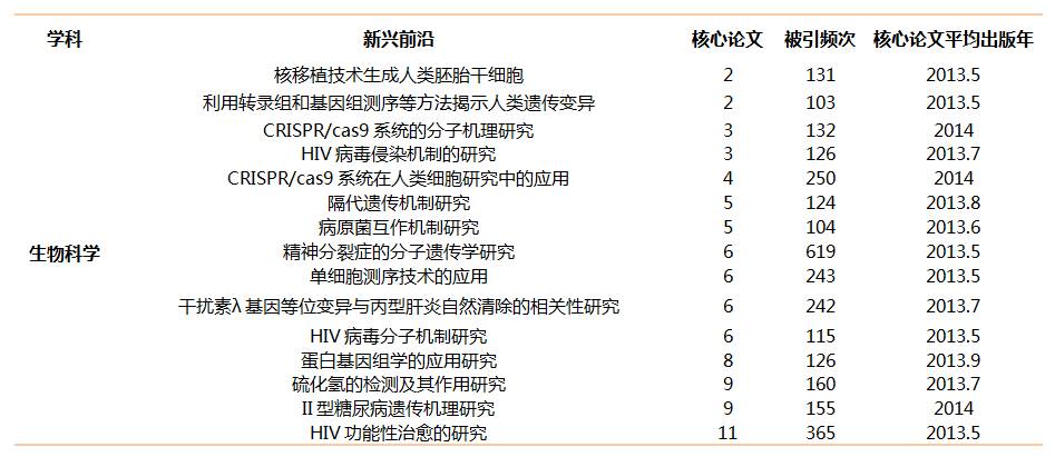 生物科学Top10研究前沿发展态势